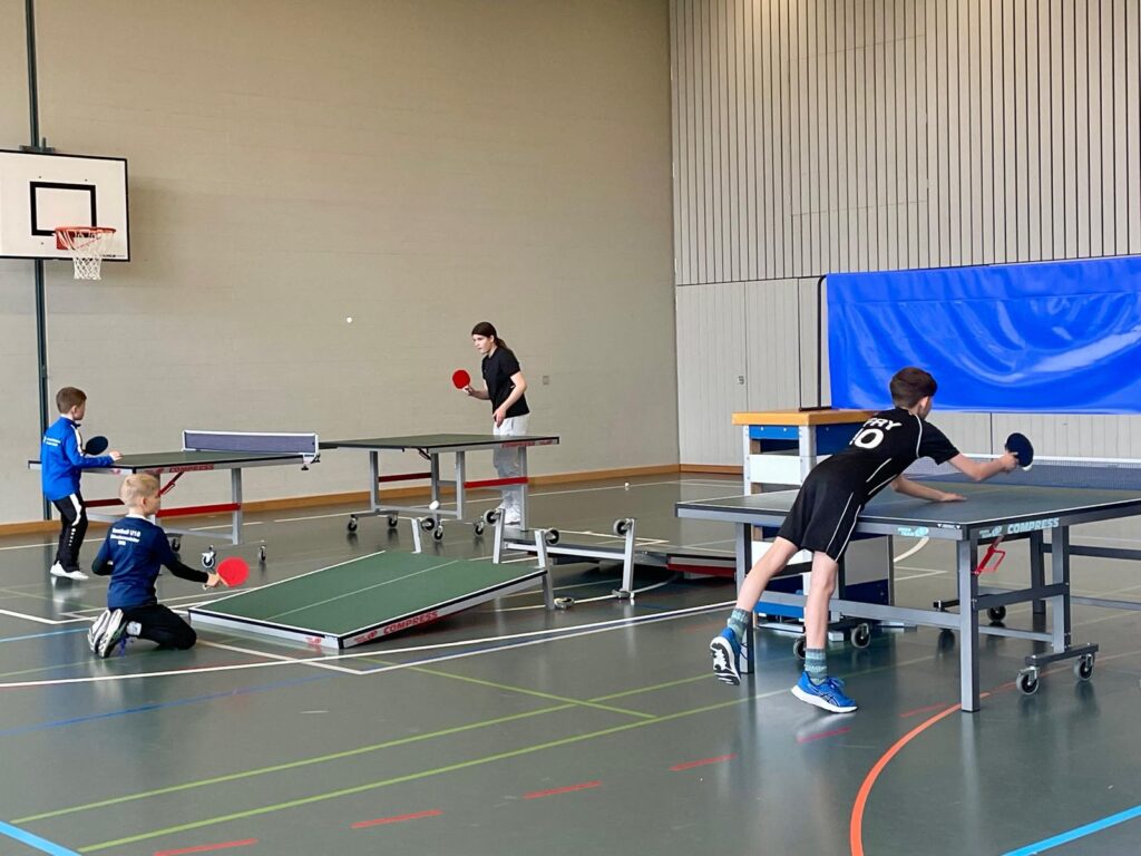 Zum Abschluss wurde es dann nochmal richtig kreativ beim „kuriosen Tischtennis“. Die Tische wurden auf ungewohnte Art zusammengestellt, sodass ganz neue Spielformen entstanden. Mit klassischem Tischtennis hatte das zwar nicht mehr viel zu tun, aber genau das machte den Reiz aus. Der Spass war riesig.
